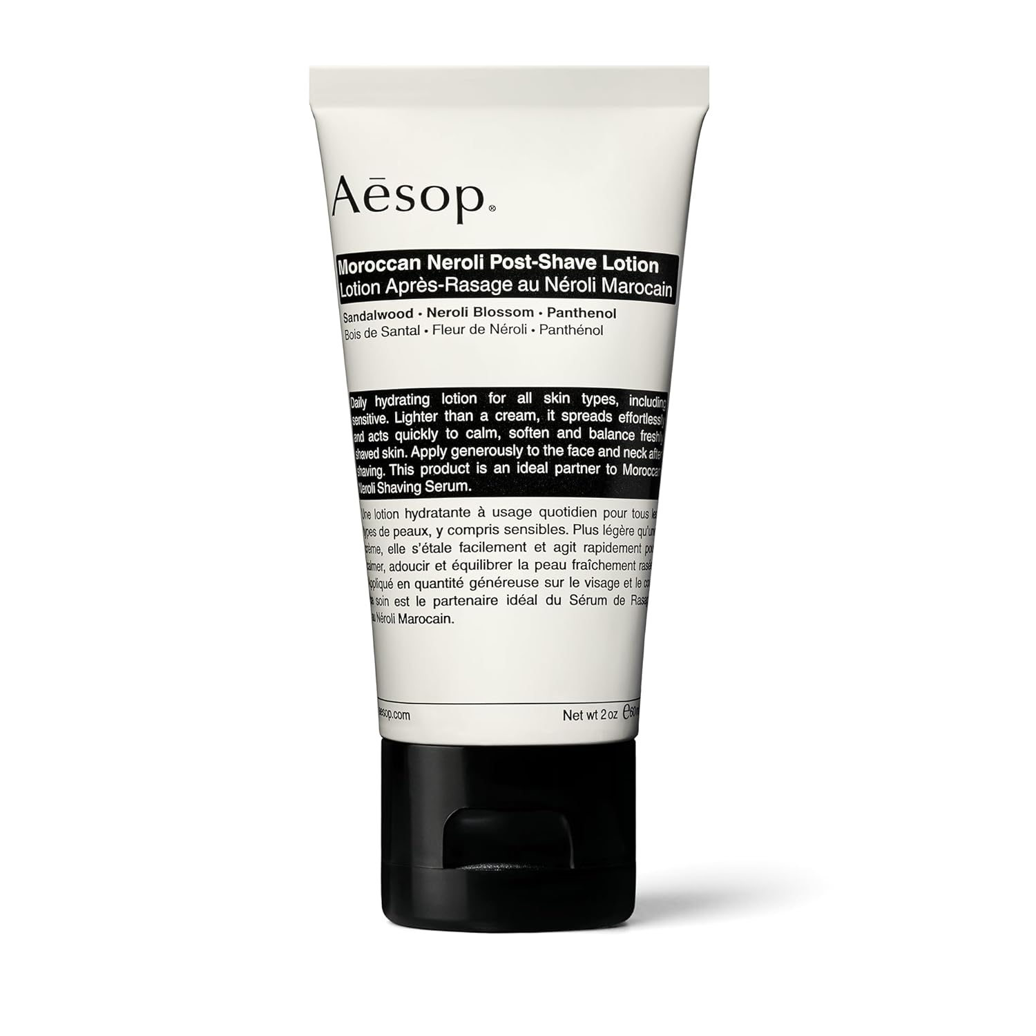 Aesop Moroccan Neroli Post-Shave Lotion by Aesop is a unisex hydrating lotion enriched with botanical oils, designed to balance and calm skin following shaving or daily cleansing. With a lightweight texture and a warm, woody-spicy aroma, this formula delivers soothing comfort for normal, combination and sensitive skin, helping to reduce irritation and leave skin feeling smooth and settled. Infused with sandalwood, neroli blossom and panthenol (pro-vitamin B 5), it absorbs quickly and supports skin's post-shave recovery while offering a refined, understated finish.