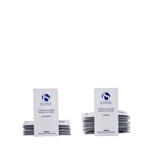 The iS Clinical Foaming Enzyme Masque System Professional is a professional-grade, two-step treatment designed to revitalize, smooth, and brighten the skin. Each set contains an activator and a powder that, when combined, create an active foaming masque powered by natural fruit enzymes and powerful antioxidants. This luxurious treatment gently exfoliates the skin's surface, helping to refine texture, even skin tone, and reveal a radiant complexion without irritation. Suitable for most skin types, it delivers visible results after just one session, leaving the skin refreshed, polished, and luminous. With consistent treatments, it supports overall skin clarity, health, and vibrancy.