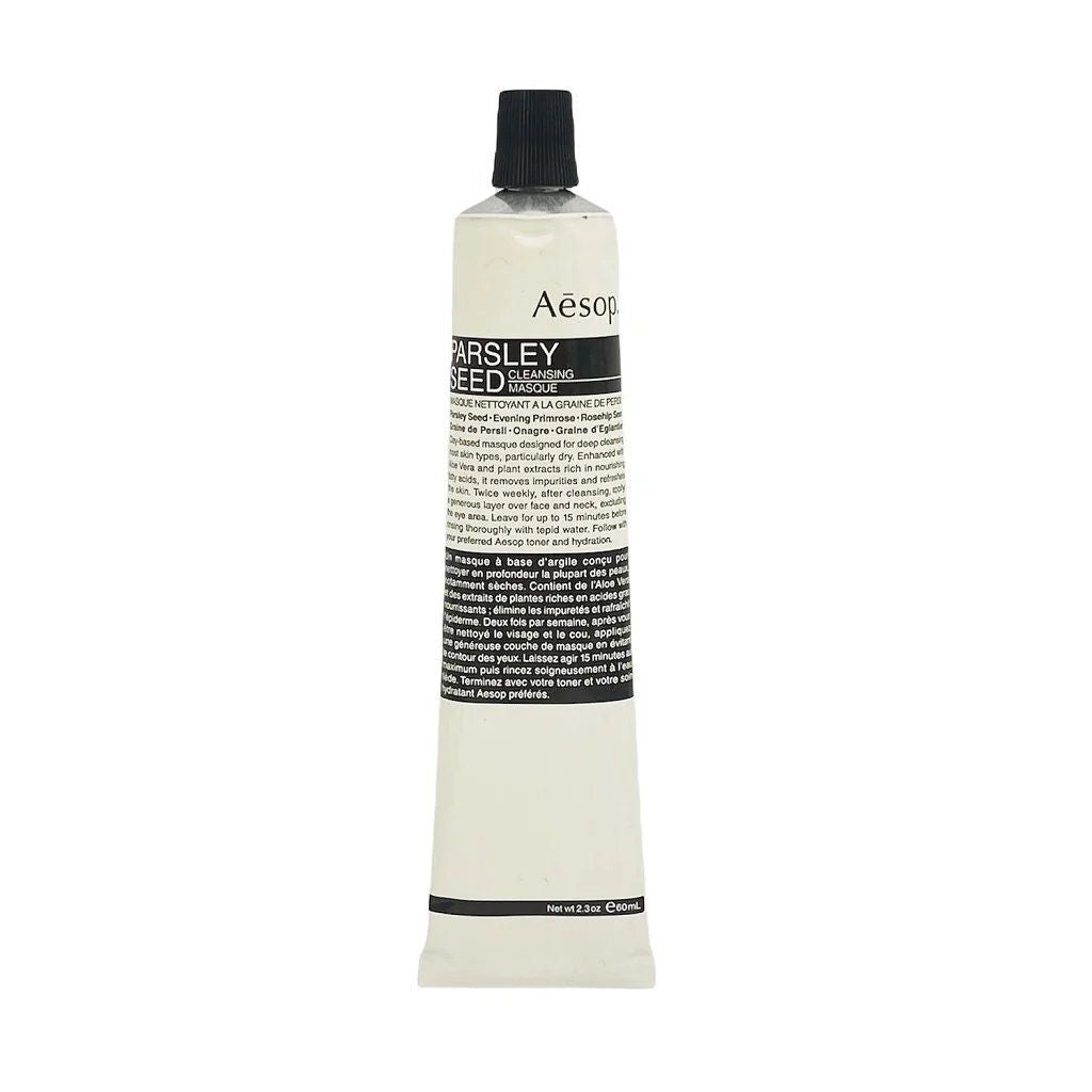 Reset and purify your skin with the Aesop Parsley Seed Cleansing Masque—a powerhouse treatment designed to deep-cleanse, detoxify, and replenish in one effortless step. Formulated with botanical extracts and mineral-rich clays, this masque absorbs excess oil, draws out impurities, and leaves your skin refreshed, refined, and balanced. Whether you’re battling city pollution, stress, or tired-looking skin, this masque is your go-to solution for a fresh, healthy glow. Deep clean. Replenish. Glow.
