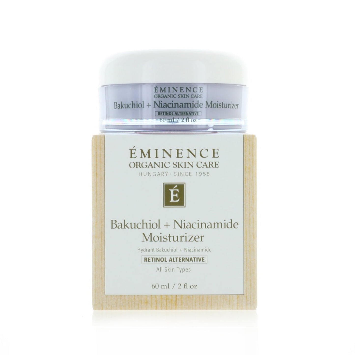 Eminence Bakuchiol + Niacinamide Moisturizer is a cutting-edge gel-cream that combines the power of a natural retinol alternative with the skin-strengthening benefits of niacinamide. This award-winning formula smooths the appearance of fine lines and wrinkles while visibly firming and tightening the skin. Bakuchiol delivers retinol-like results without irritation, while niacinamide minimizes the look of large pores, evens skin tone, and improves texture. With daily use, hydration is restored, the skin barrier feels replenished, and the complexion appears healthier and more refined. Lightweight yet deeply nourishing, this moisturizer leaves skin soft, supple, and radiant.